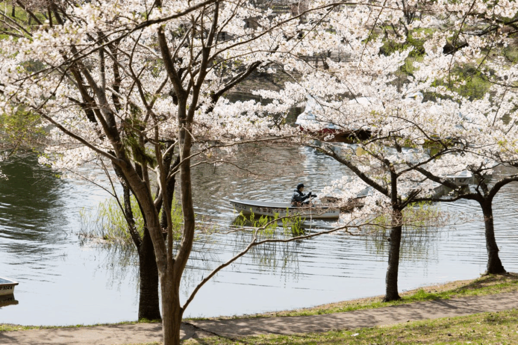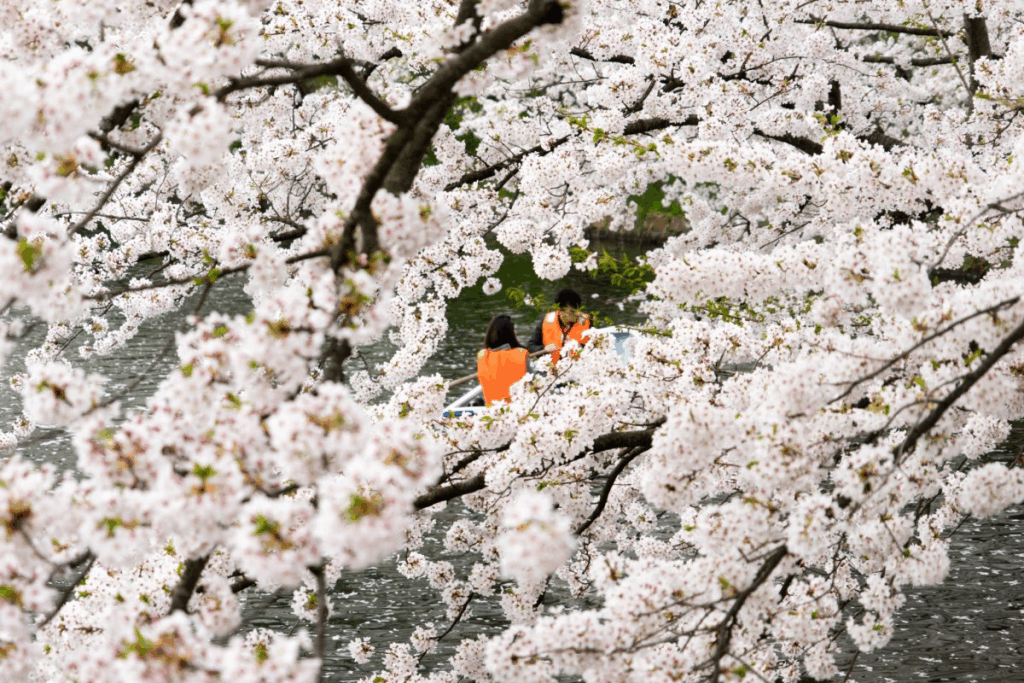 พอถึงแล้วแค่หน้าทางเข้า East Gate ก็เจอซากุระบานเต็มแล้ว เป็นพันธุ์ Somei Yoshino พันธุ์ที่เราเห็นมากที่สุดในญี่ปุ่น กลีบดอกจะสีขาว ข้างในแกมชมพู