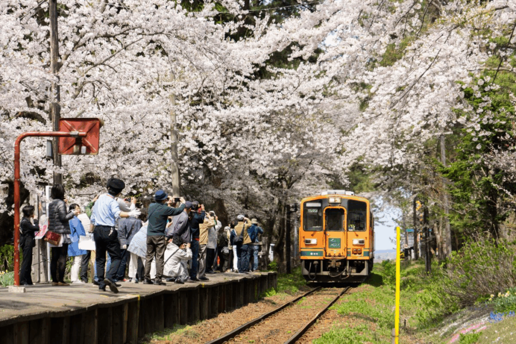 แวะจอดที่สถานีระหว่างทาง 5 นาทีลงไปถ่ายรูปซากุระได้