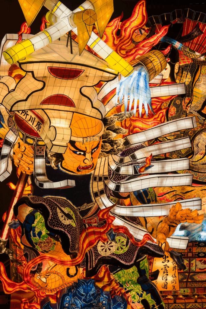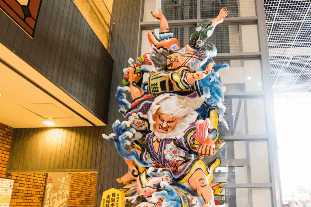 ถึงสถานี Goshogawara แล้วจะเห็นตึกสูงๆข้างสถานี เขาเอาไว้ใส่โคมไฟยักษ์ Tachineputa โคมไฟสู 20 เมตร จะมีงานเทศกาลทุกปีช่วงต้นสิงหาคม