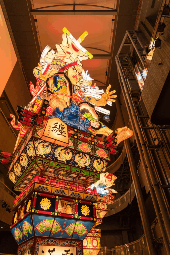เรากลับมาเที่ยวที่เมือง Goshogawara มาเที่ยว Tachineputa Museum เป็นที่เก็บโคมไฟยักษ์และเล่าเรื่องราวเกี่ยวกับโคมไฟยักษ์นี้ ที่เห็นในรูปกระจกสามารถเลื่อนเปิดได้แล้ว แล้วเข็นโคมไฟยักษ์ออกมา อย่างกับโรงงานหุ่นยนต์