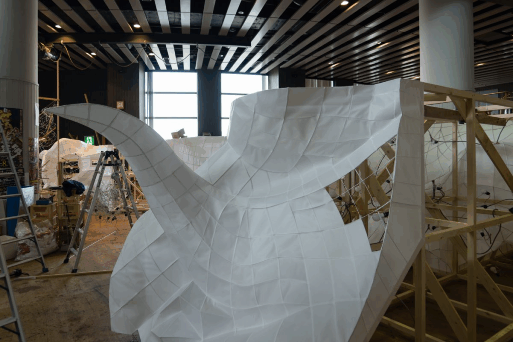 ขึ้นมาด้านบนจะเห็นกำลังทำโคมยักษ์อันใหม่ จะทำแยกเป็นส่วนๆแล้วมาประกอบเข้าด้วยกัน