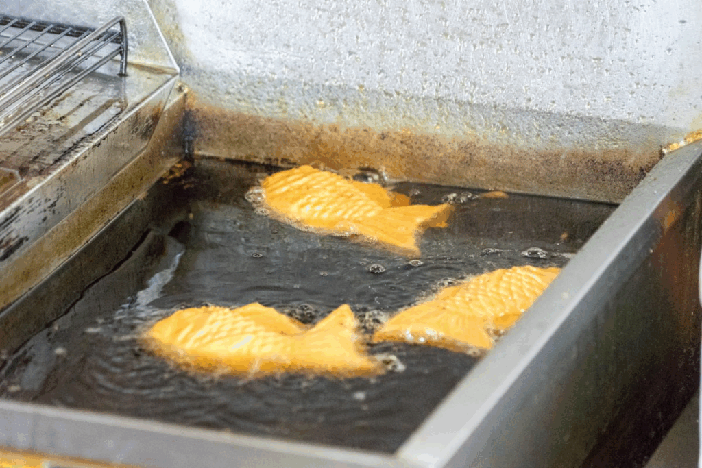 เราออกมาด้านหลังของพิพิธภัณฑ์ เดินไปด้านขวาจะเจอร้านไทยากิชื่อดังของเมืองนี้ ไทยากิ ก็ขนมปลาไส้ถั่วแดง ไง แต่ความพิเศษคือมีเอาไปทอดอีกรอบด้วย ทำให้มีความกรอบนอกนุ่มใจ อร่อยมาก