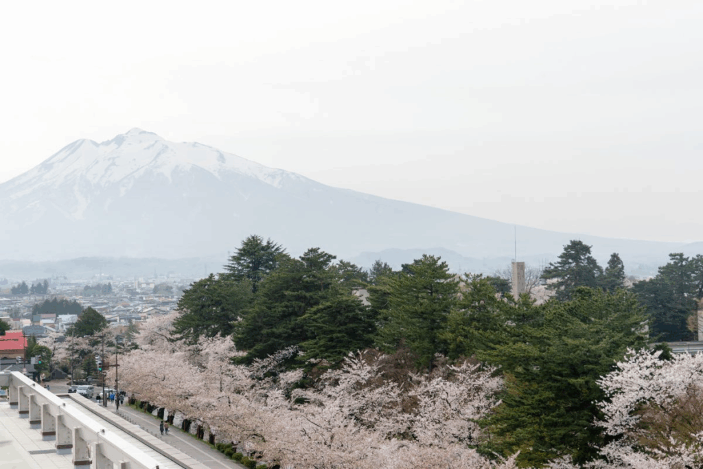 ถ้าฟ้าใสมากๆ จะเห็นภูเขา Iwaki ด้านหลังปราสาทเลย