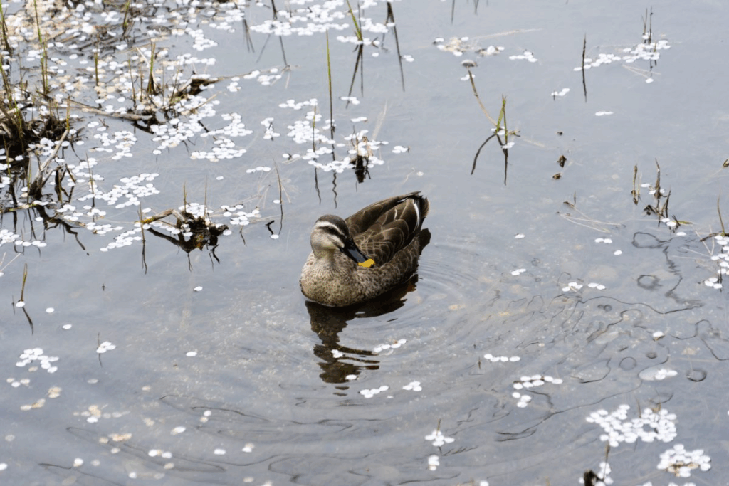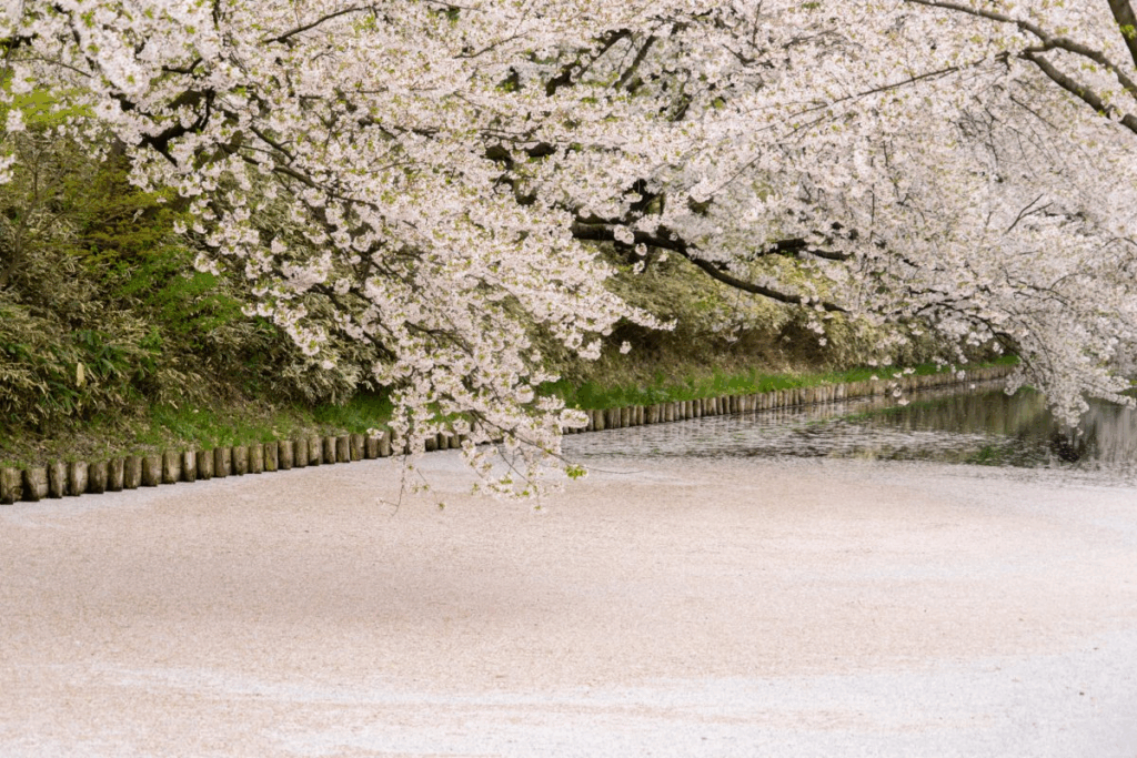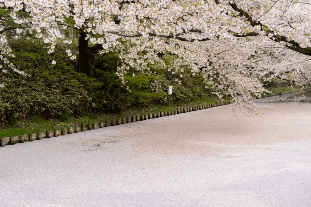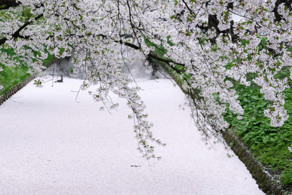 ให้เดินไปรอบๆคูเรื่อยจะเจอจุดที่กลีบซากุระไหลมารวมกันจนเป็นพรมซากุระไปเลย สวยมาก