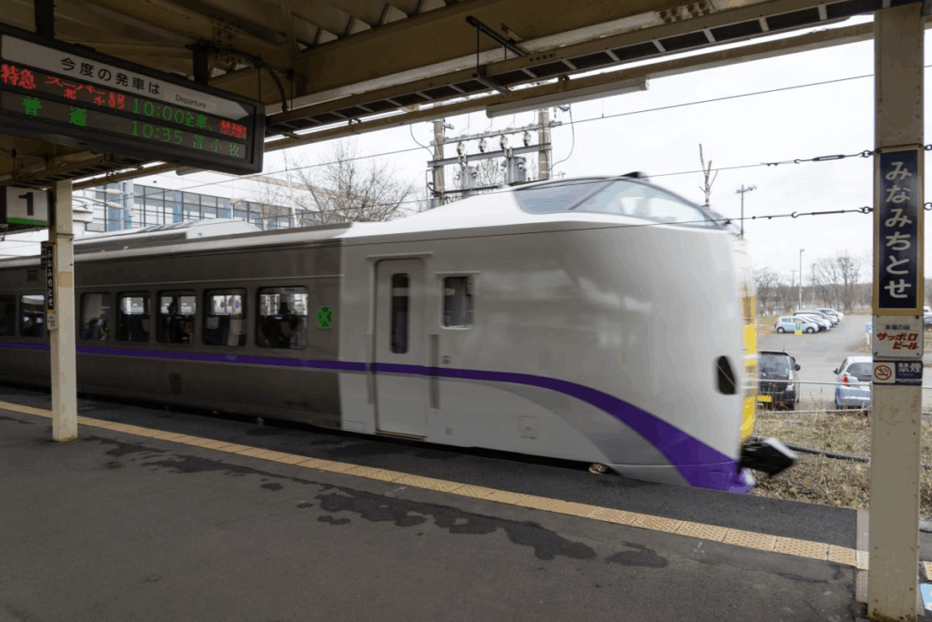 ไม่นานขบวน Ltd. Super Hokuto ก็มาแล้วเป็นขบวนที่ไว้วิ่งจากซัปโปโรไปถึงฮาโกดาเตะ จริงๆ ฮอกไกโดยังไม่มีชินคันเซนแบบทั่วถึงเลย มีแค่เริ่มต้นจากฮาโกดาเตะลงไปโตเกียว ไม่มีไปซัปโปโร
