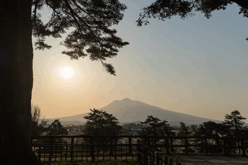 รอชมวิวพระอาทิตย์ตก ฉากหลังเป็นเขา Iwaki