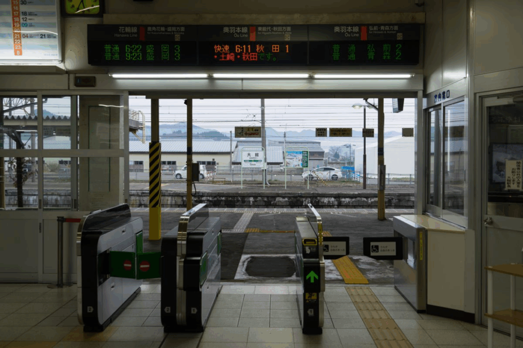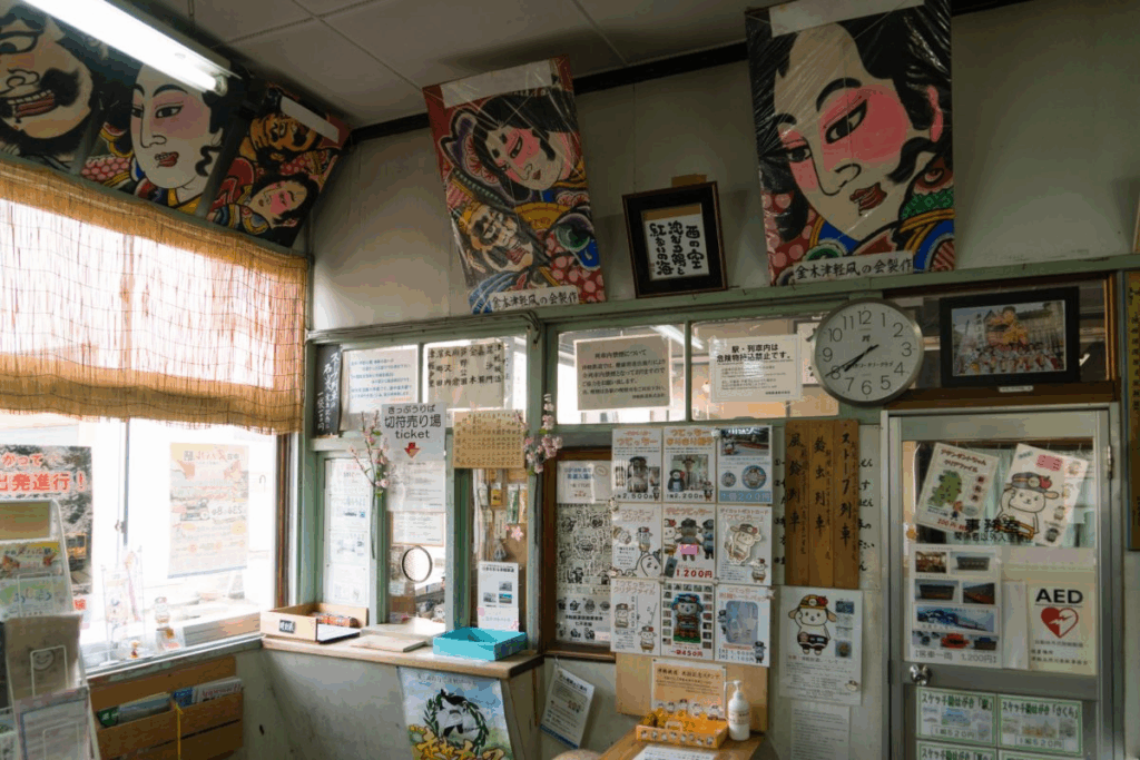 มาที่สถานี TsugaruGoshogawara สถานีวินเทจมาก อยู่ด้านซ้ายติดกับสถานี JR Goshogawara เลย มาซื้อตั๋วกับป้าราคา 640 เยน