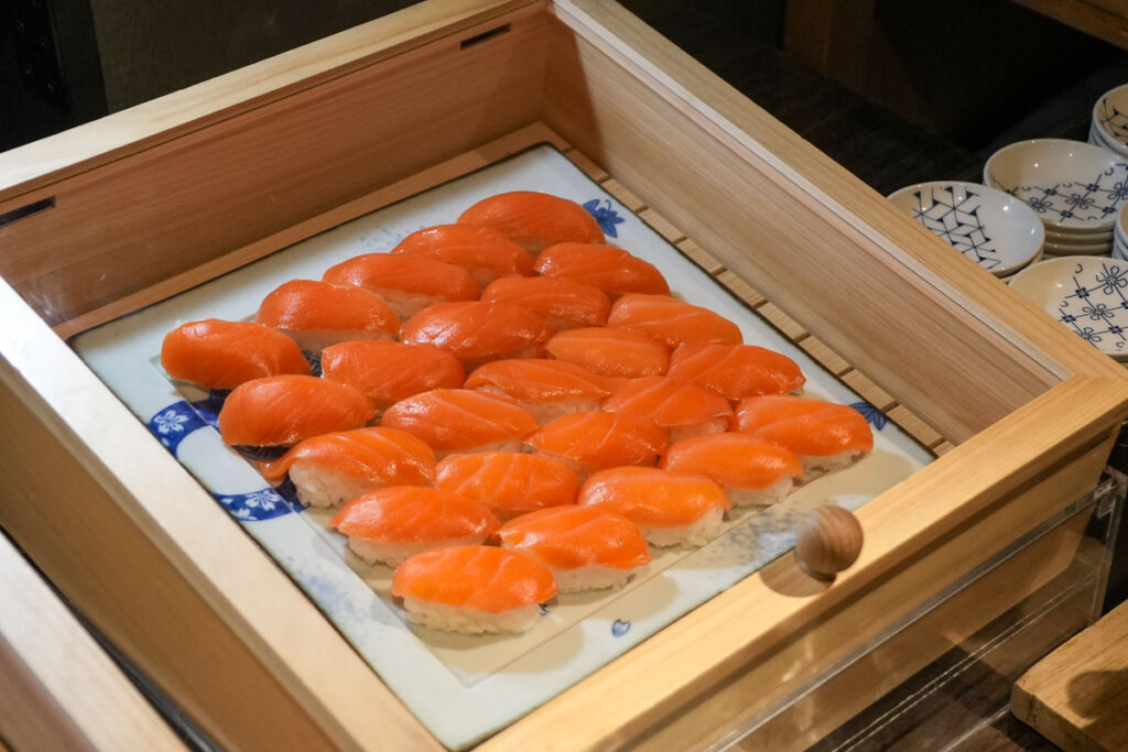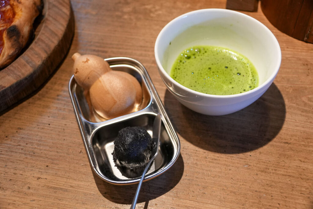 เมนูที่ทุกคนต้องสั่งคือ “Narayan” เป็นขนม Monaka แป้งกรอบสอดไส้ถั่วแดง รูปทรงน้ำเต้า ซึ่งเป็นสัญลักษณ์ของตระกูลเจ้าของเดิม ความสนุกคือคุณสามารถเลือกไส้เองได้ เช่น ถั่วแดงกวน, งาดำ, ถั่วลันเตากวน หรือไส้ตามฤดูกาล และตักไส้ใส่ในตัวแป้งเอง สามารถสั่งเป็นเซตพร้อมเครื่องดื่มได้