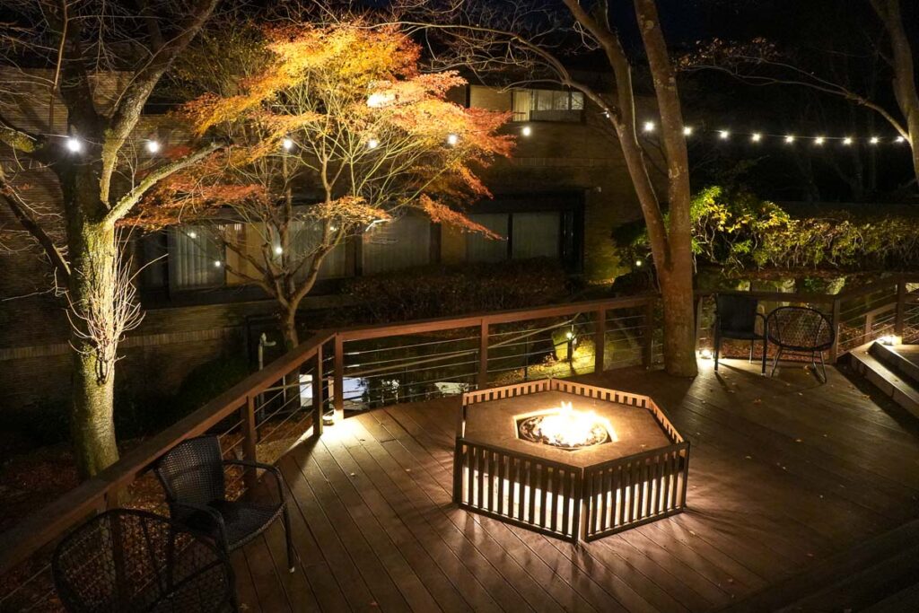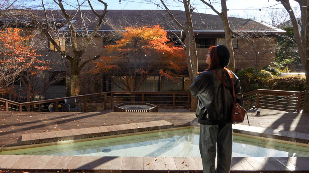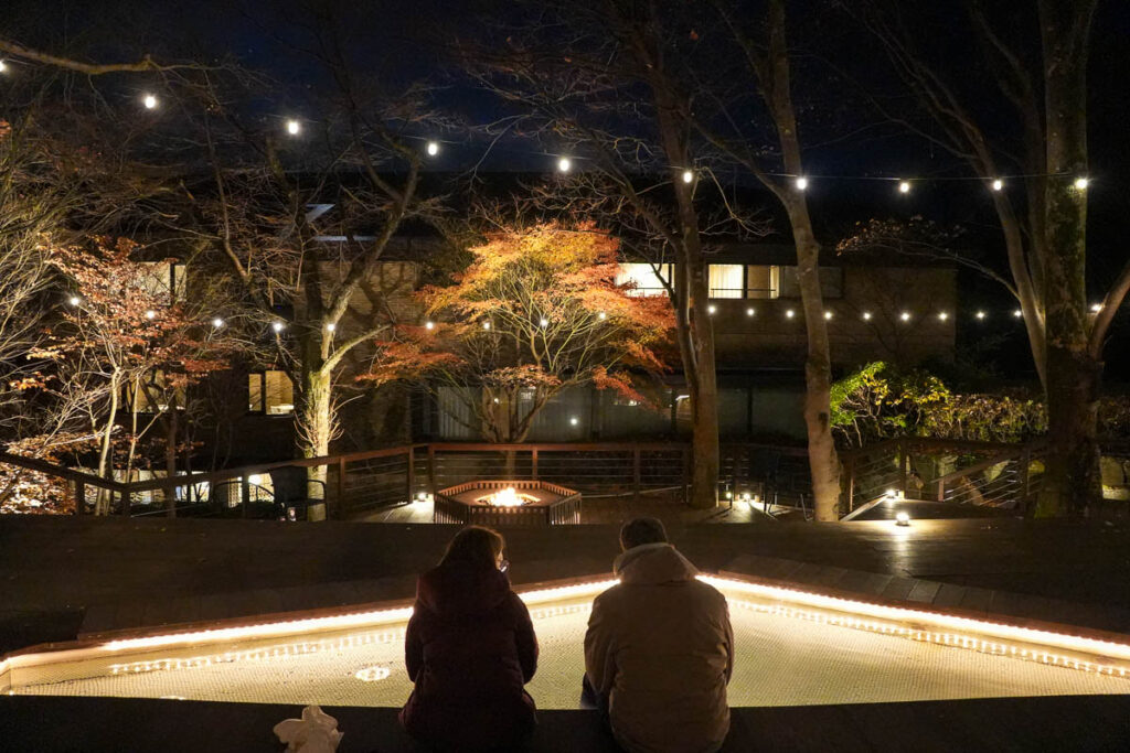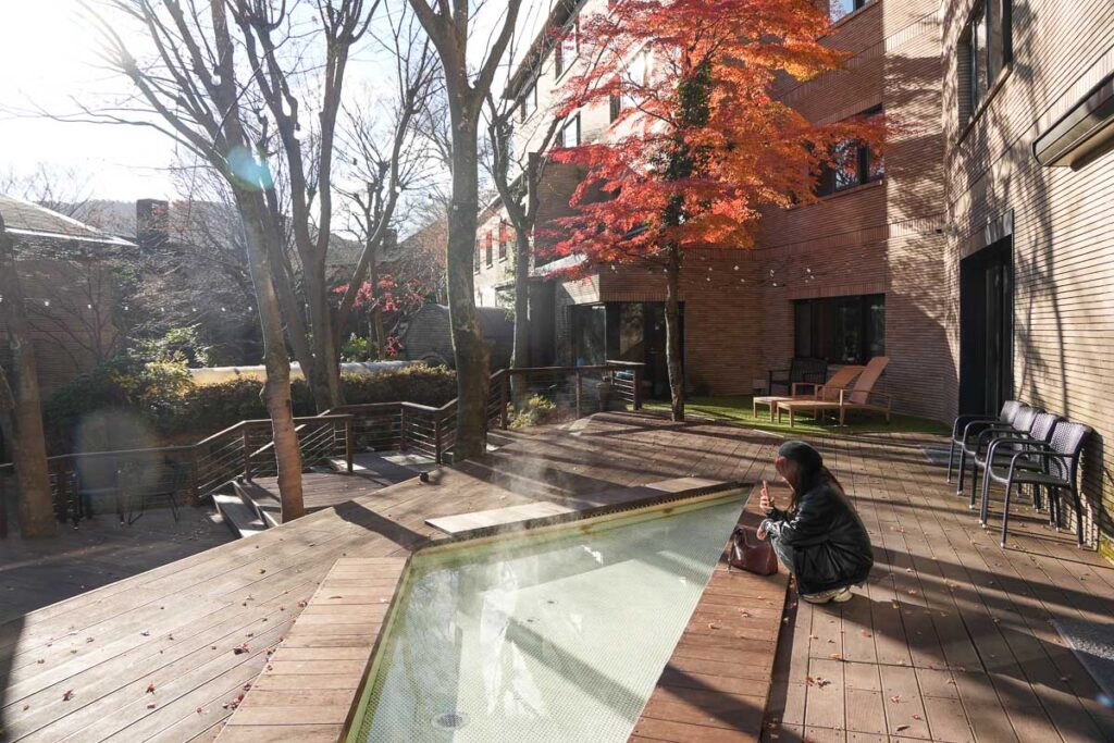 จุดเด่นของโรงแรมนี้ คือ ลานไม้กลางแจ้งที่มี บ่อออนเซนแช่เท้า และเตาผิงไฟกลางแจ้ง บรรยากาศตอนกลางคืนจะโรแมนติกและผ่อนคลายมาก