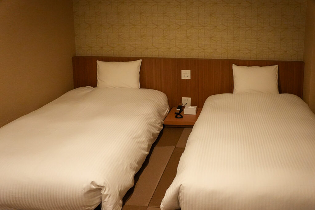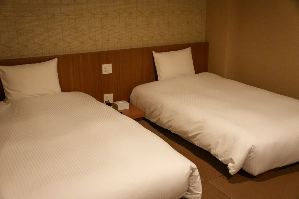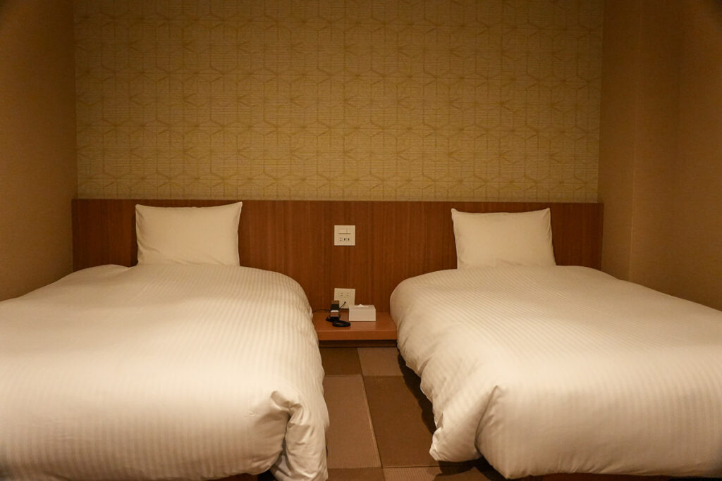 Type Standard Twin Room ห้องที่เราพักเป็นสไตล์ Japanese modern เตียงคู่ ทำให้นอนได้สะดวกสบายสำหรับทุกคน ซึ่งทางโรงแรมยังมีห้อง Type แบบอื่นอีกๆ ที่เหมาะสำหรับครอบครัวก็จะเป็นห้องแบบคอนโดมิเนียม มีห้องครัว