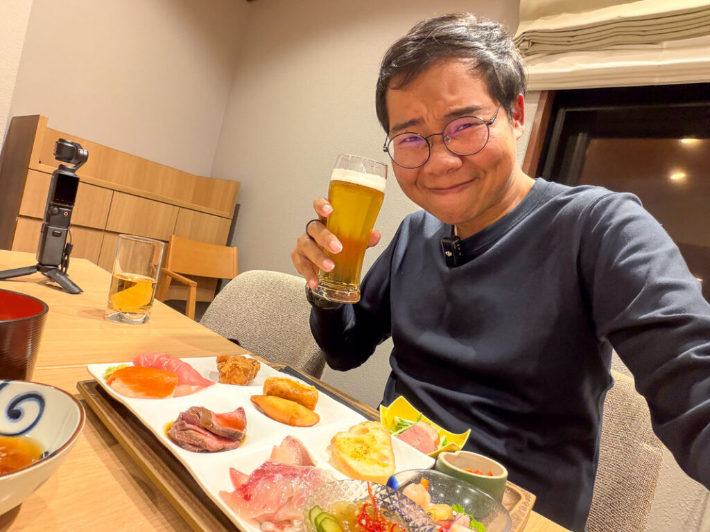 มาถึงที่พักของเรา เป็นโรงแรมญี่ปุ่นสมัยใหม่ที่ตั้งอยู่ในย่าน Gora ที่นี่โดดเด่นมากในเรื่องของการออกแบบที่เน้นความผ่อนคลายและการใช้พื้นที่ส่วนกลางที่ให้ความรู้สึกเหมือนอยู่บ้าน