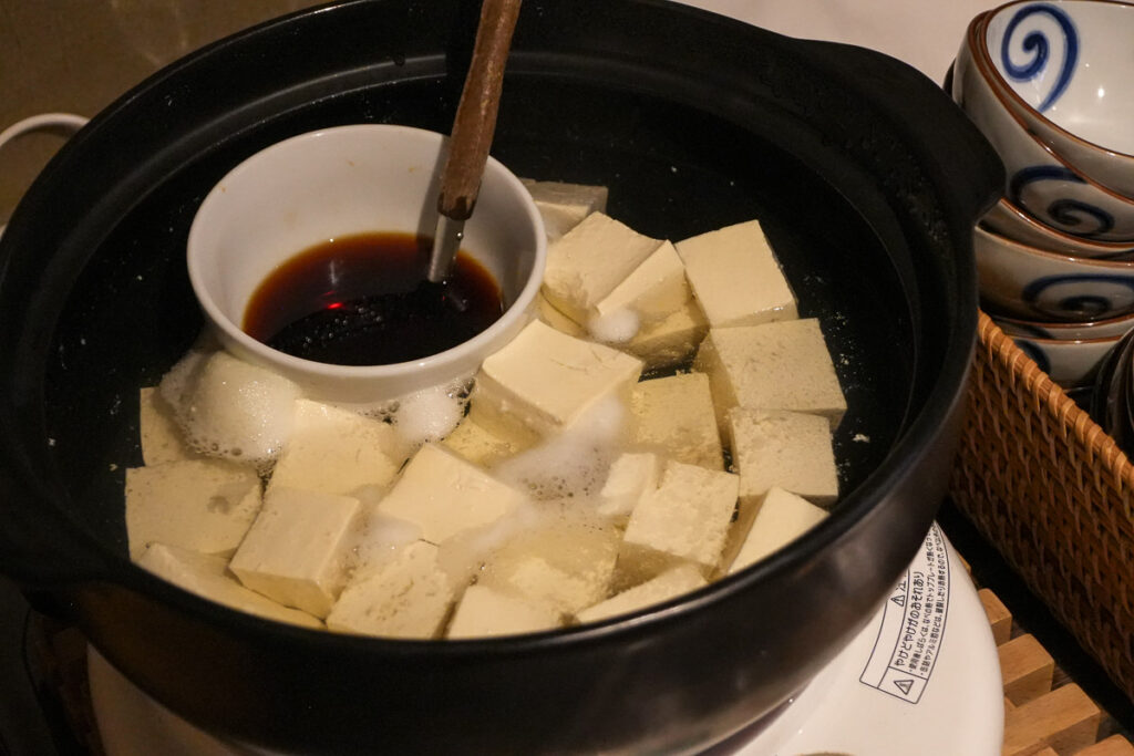 จุดเด่นที่สุดคือ มีบ่อออนเซนแช่เท้า ให้แช่ระหว่างทานขนมไปด้วย