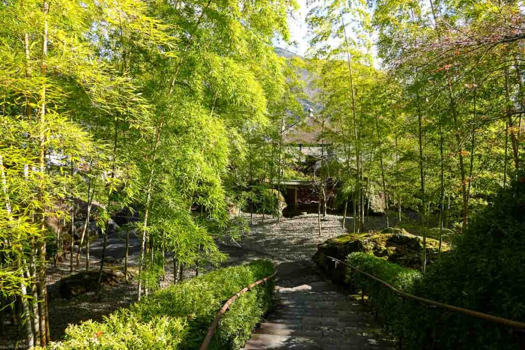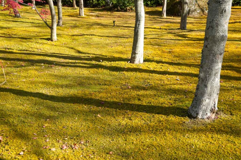 แต่จริงๆแล้วสวนแห่งนี้ดังเรื่องสวนมอส มีมอสมากกว่า 130 สายพันธุ์ปกคลุมพื้นดินราวกับพรมสีเขียวหนานุ่ม ปลูกดูแลอย่างดี