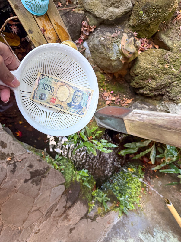 ศาลเจ้าล้างเงิน แห่งฮาโกเน่ เป็นศาลเจ้าเล็กๆ ที่มีความลับและน่าสนใจมาก มีความเชื่อสืบต่อกันมาว่า หากนำเงิน มาล้างด้วยน้ำพุร้อนธรรมชาติที่ไหลอยู่ภายในศาลเจ้าแห่งนี้ เงินนั้นจะเพิ่มพูนขึ้นหลายเท่าตัว และนำโชคลาภด้านการเงินมาให้เจ้าของ