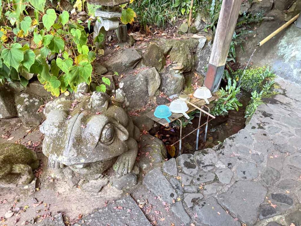 ศาลเจ้านี้สร้างขึ้นเพื่อบูชา เทพเจ้าเบนไซเทน ซึ่งเป็นเทพแห่งโชคลาภ ศิลปะ และสายน้ำ จึงไม่แปลกที่น้ำศักดิ์สิทธิ์ที่นี่จะถือว่ามีพลังมากในการดึงดูดทรัพย์
