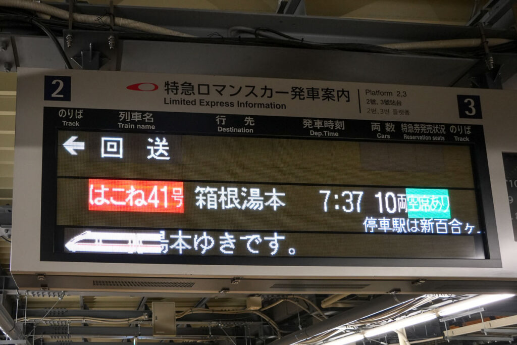 เราเริ่มเดินทางจากสถานี Odakyu Shinjuku ซึ่งเราจะเดินทางด้วย Romancecar เป็นขบวนรถไฟด่วนพิเศษของสายรถไฟ Odakyu จะไม่ได้รวมอยู่ในพาส เราต้องซื้อตั๋วรถด่วนต่างหาก ก็สามารถซื้อออนไลน์ได้เช่นกัน