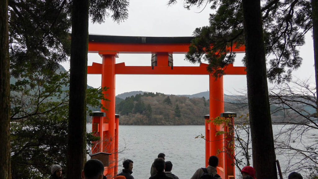 เราเดินไปต่อที่ศาลเจ้า Hakone หนึ่งในศาลเจ้าชินโตที่มีความสำคัญและสวยงามที่สุดในภูมิภาคคันโต ตั้งอยู่ท่ามกลางป่าทึบริมฝั่งทะเลสาบอาชิ ศาลเจ้านี้มีประวัติยาวนานไปถึงปี ค.ศ. 757 ในอดีตเป็นสถานที่ที่เหล่าซามูไรและโชกุน นิยมมาสักการะเพื่อขอพรให้มีชัยชนะในการรบ ปัจจุบันผู้คนนิยมมาขอพรเรื่องความปลอดภัยในการเดินทาง, โชคลาภ และความรัก