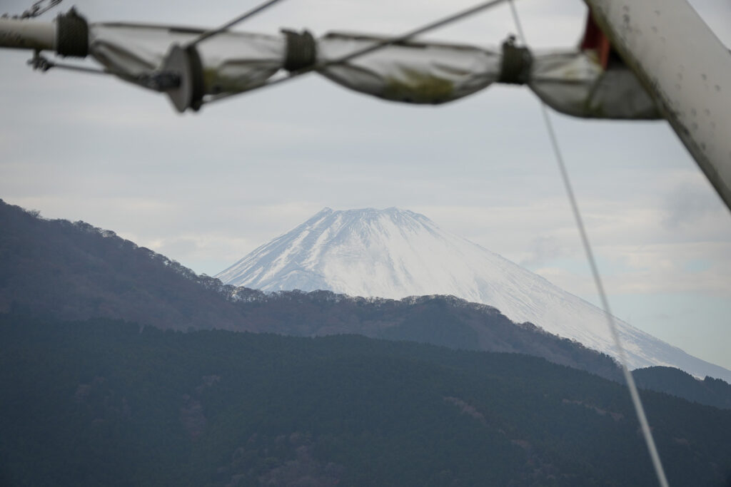 พอเราล่องเรือไปเรื่อยๆ ฟูจิก็เริ่มเปิดให้เราเห็นลูกโตๆ ไม่ว่าจะมากี่ครั้ง ความตื่นเต้นที่ได้เห็นฟูจิไม่เคยหายไป เพราะใหญ่กว่าที่เราจินตนาการหลังหมอกเสมอ สวยจริงๆ