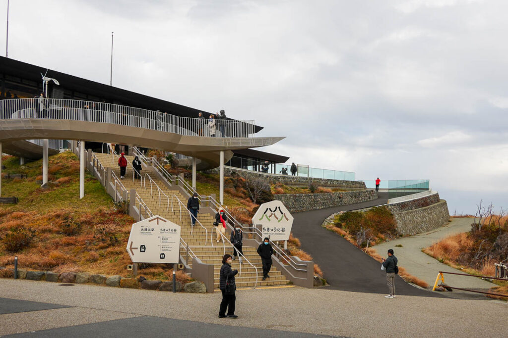 - Ibuki no Deck (ลมหายใจของโลก) เป็นระเบียงชมวิวที่มี “พื้นกระจกใส” ยื่นออกไปเหนือหุบเขา ทำให้คุณมองเห็นไอน้ำที่พุ่งขึ้นมาจากพื้นดินใต้ฝ่าเท้าได้แบบเต็มตา