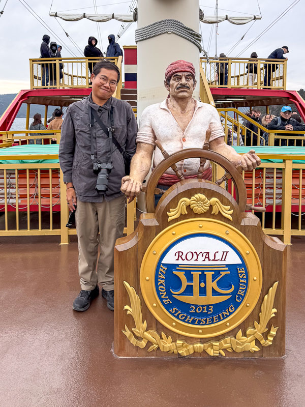 แล้วเราก็มานั่งเรือโจรสลัดล่องทะเลสาบอาชิ กัน ซึ่งเราสามารถใช้พาสขึ้นได้เลย แต่จะมีแบ่งห้องพิเศษที่จ่ายเพิ่มอีก 800 เยน หากโชว์ฟรีพาสตอนซื้อตั๋วห้องพิเศษจะได้รับส่วนลดเหลือเพียง 700 เยน เราจะได้อยู่ในห้องและดาดฟ้าเรือแบบไม่มีใครแย่งเลย ก็สะดวกขึ้นไปอีก ใช้เวลาล่องเรือไม่นานประมาณ 30 นาที