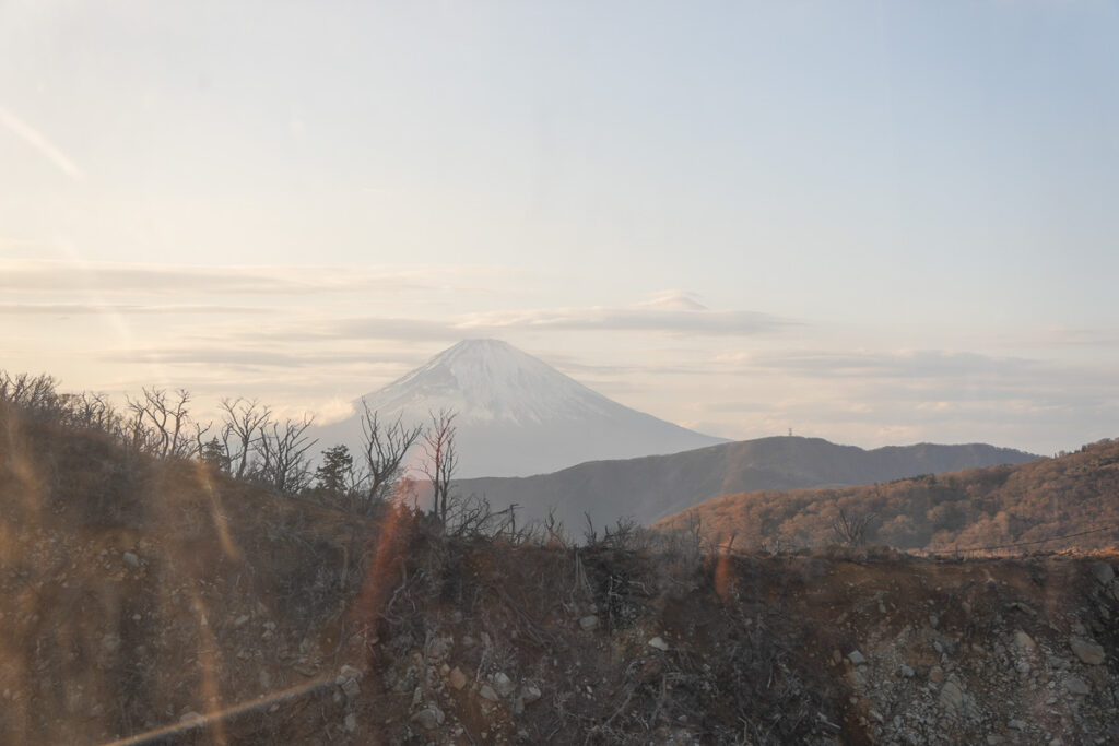 เราเริ่มนั่งกระเช้าลงไปด้านล่าง ฟูจิยังคงเห็นชัดในทุกมุม