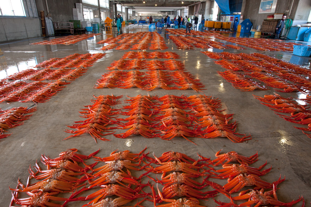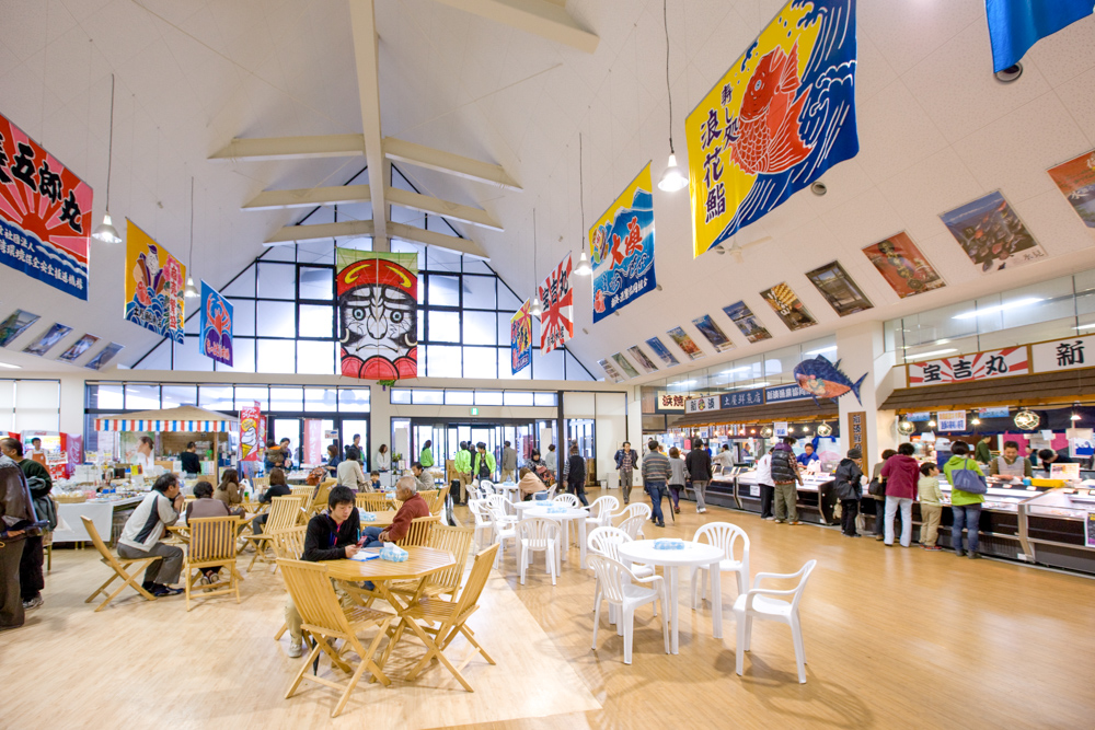 ที่ตลาดชินมินาโตะ คิตโตะคิโตะ (Shinmanato kittokito Market) คุณสามารถเพลิดเพลินกับปลาที่สดและอร่อยหลากหลายจากอ่าวโทยามะ เช่น กุ้งขาว ซึ่งถูกเรียกว่า “อัญมณีแห่งอ่าวโทยามะ” ปูหิมะสีแดง และปลาหมึกหิ่งห้อยและวัตถุดิบจากสดๆจากทะเล อื่นๆมากมาย