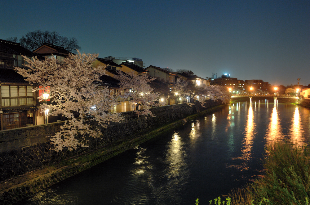 ย่าน Kazuemachi Chayagai ย่านนี้เป็นย่านที่เรียงรายไปด้วยร้านอาหารและร้านน้ำชาแบบย้อนยุค ใกล้กับแม่น้ำอาซาโนะ ในช่วงกลางคืน คุณจะได้ยินเสียงชามิเซ็นและกลอง จากการละเล่นของเกอิโกะ ให้บรรยากาศย้อนยุคแบบญี่ปุ่น เป็นจุดชมซากุระที่สวยงามอีกแห่งในคานาซาว่า
