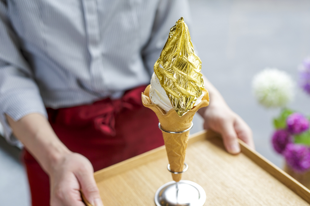ซอฟต์ครีมทองคำ คานาซาว่ามีชื่อเสียงในด้านทองคำเปลว ซึ่งคิดเป็น 99% ของการผลิตทองคำเปลวในญี่ปุ่น ขึ้นชื่อด้านงานฝีมือโดยใช้ทองคำเปลวแต่ก็ยังนิยมทำเป็นอาหารอีกด้วย มาเที่ยวที่นี่เราขอแนะนำ “ซอฟต์ครีมทองคำคากายากิ” มาเที่ยวที่นี่แล้วห้ามพลาดนะ