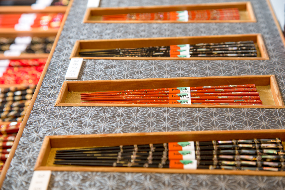 ตะเกียบวากาสะ (Wakasa-nuri Hashi) ซึ่งมีประวัติความเป็นมายาวนานกว่า 400 ปี โดยจุดเด่นของตะเกียบวากาสะคือลวดลายบนตัวตะเกียบที่สวยงาม และขั้นตอนการผลิตที่ทั้งละเอียดและประณีตอย่างมาก โดยตะเกียบบางคู่ถึงขั้นใช้เวลาในการผลิตเป็นสัปดาห์หรือเป็นเดือนเพื่อให้ได้คุณภาพสูงสุด