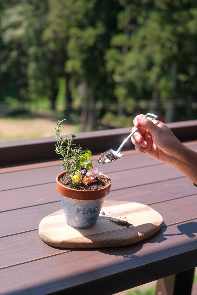 สำหรับเมนูที่เราชื่นชอบที่สุดก็คือของหวานชื่อว่า “ฮะจิอุเอะ” (Hachiue) เป็นเมนูแนะนำของทางร้าน ชอบในไอเดียที่ทำเป็นกระถางต้นไม้น่ารักมากๆ เลยค่ะ ตรงกับชื่อ “ฮะจิ” ที่แปลว่ากระถาง ให้ความรู้สึกคล้ายๆ กับรับประทานเค้กทิรามิสุ ข้างในยังสอดไส้ธัญพืชต่างๆ เช่น ลูกเกด คอนเฟลก เป็นต้น